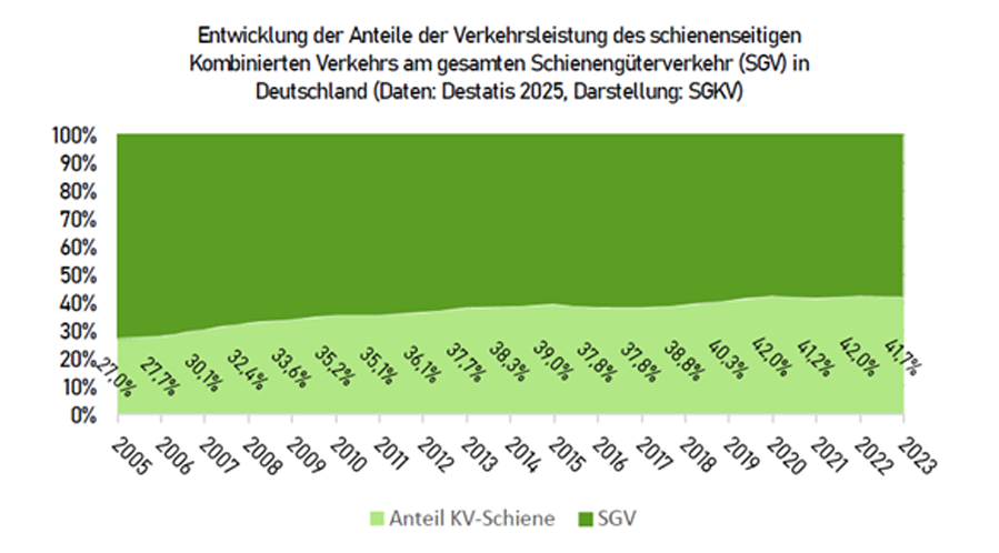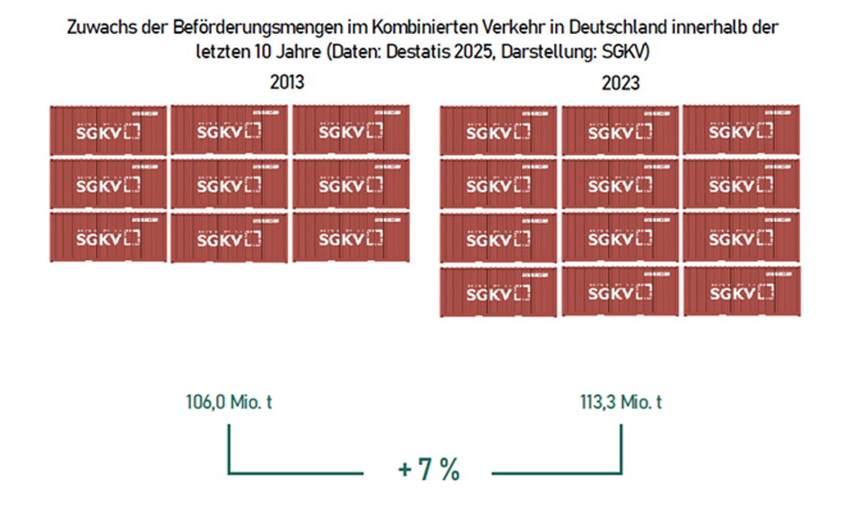 In Deutschland und Europa spielt der Kombinierte Verkehr (KV) eine zentrale Rolle in der Logistik. Denn er verbindet die Stärken von Straße und Schiene: Güter werden in Containern, Wechselbrücken oder Sattelaufliegern transportiert, ohne dass sie beim Umstieg umgeladen werden müssen. So werden die Ladeeinheiten den längsten Teil der Strecke überaus umweltfreundlich zwischen den deutschen und europäischen Wirtschaftszentren befördert. Ein Güterzug kann dabei etwa 40 Lkw ersetzen und die Bahn verursacht pro Tonnenkilometer rund 80 Prozent (!) weniger CO₂ als der Lkw. In klimapolitisch herausfordernden Zeiten ist die Transportalternative Straße-Schiene damit Garant für die erforderliche Verkehrswende.